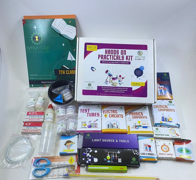 Teacher Kits are specially developed to make classroom learning more interactive, practical, and accessible. They are designed to overcome the limitations of traditional lab setups, especially in schools where daily access to labs is not feasible. These kits serve as a powerful teaching aid for delivering hands-on experiences right inside the classroom. Each kit is created with a specific subject in mind. Topics include electricity, optics, chemistry, plant biology, animal biology, human biology, magnetism, 2D geometry, 3D geometry, algebra, and many more.